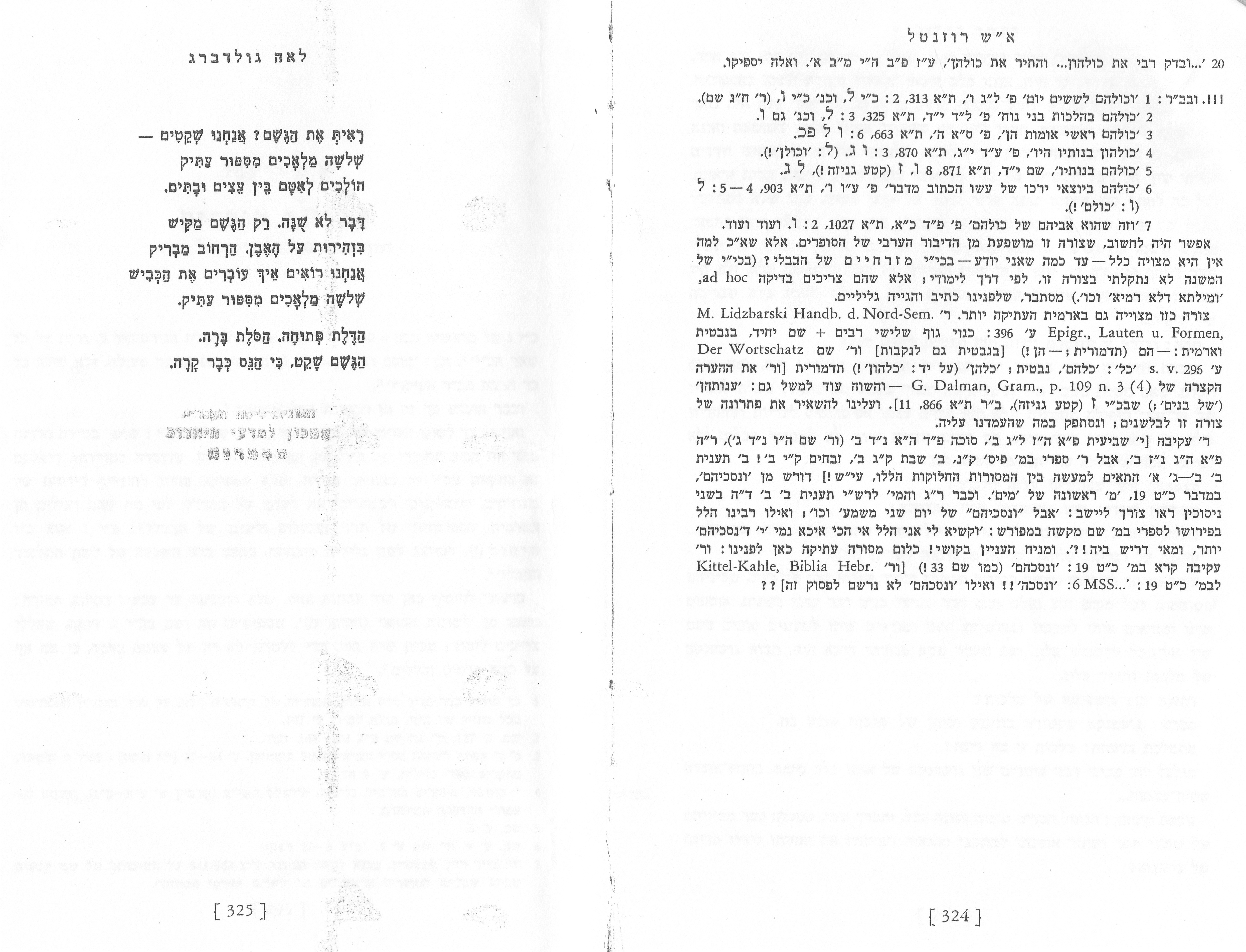 But enough complaining. This testing period has had me reading quite a lot of secondary literature on the Yerushalmi, a Talmud which I believe has received relatively little attention here on The Talmud Blog. One of the phenomena that I’ve been taken by over the past couple of months is that of the gerashim in Palestinian corpora. E.S. Rosenthal’s pioneering essay on the Vatican 30 manuscript of Genesis Rabbah in the 1958 Agnon festchrift (immediately followed by a classic Leah Goldberg poem) paved the way for the study of this form of referencing parallel sections found in many rabbinic works from the land of Israel. Even though I’ve been interested in this phenomena for a while now, only now while studying for my test on the Yerushalmi did the thought occur to me that this method of referencing parallel passages might be a function of the transmission of the work in the form of a codex as opposed to on a scroll. That is, if those who first placed the gerashim in the text of say, the Yerushalmi, were familiar with the text in a written as opposed to oral form, then it seems likely that they were familiar with it on a codex. Placing keywords to reference other passages doesn’t help so much in the case of scrolls, whereas with a codex one would be able to just turn the page to the passage referenced.
